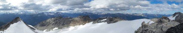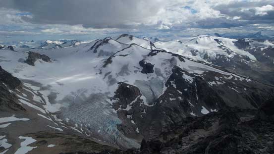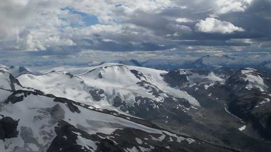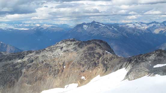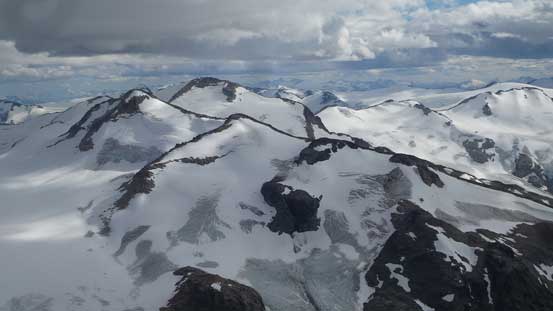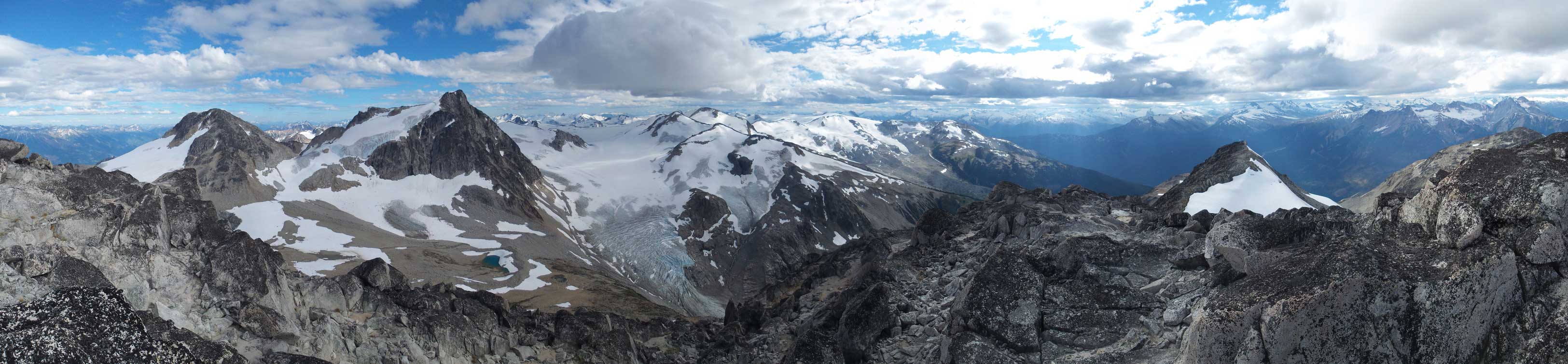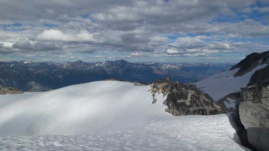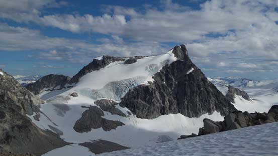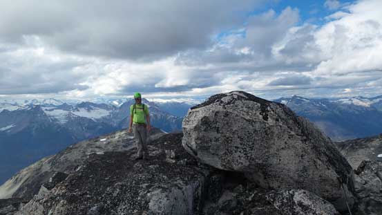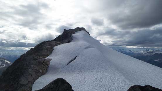 The wind picked up so we shortened the pre-planned snack break and then carried on the ridge traverse. Initially we stayed entirely on the ridge crest on snow. The hope was to traverse the entire crest but it’s not connected and we were looking at a straight drop from a false summit. The detour was on the south side and thankfully did not involve too much of a drop. The final attack of the true summit was done on the edge of a glacier (as we could tell from the opening bergschrund). We then merged onto rock and than scrambled a short, but fun 3rd class section to top out.