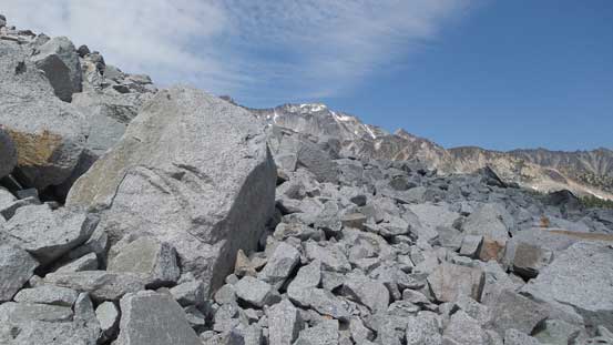 The biggest challenge for this day was the endless boulder hopping. To access these two peaks from our camp we must cross a gigantic field of granite boulders, from microwave to car sized, for about 1.5-2 km distance and sometimes on side-hilling terrain. It was just awful but that’s the theme of this area so we had to get used to it… Eventually we made across and it’s time to focus on the ascent. Eric and Ben for some reasons went further up the hanging valley between Connemara and Antrim for exploration so before I realized I was already a hundred meters or so up the slope, so from here on I essentially did the ascent solo.