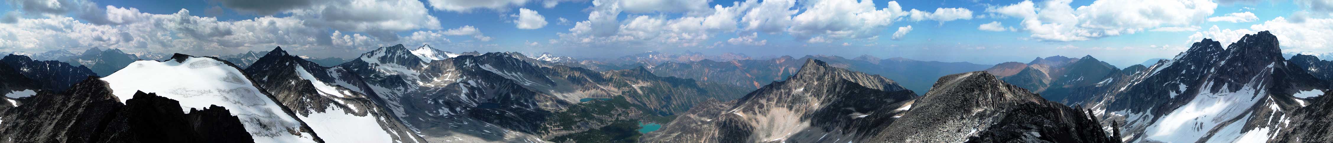 Antrim Peak is one of the easiest summits in Irish Peaks, a group of rugged peaks guarding Welsh Lakes on the south and east sides in the heart of Purcell Mountains. Ben, Eric and I scrambled it on the second day of our Welsh Lakes peak-bagging trip, after successfully ascended the nearby Mt. Alpha Centauri on Day 1. We chose Antrim Peak and Leitrim Peak since the weather forecast looked fairly unstable on this day. In fact, we got rained hard in the morning so slept in till almost 10 am. The rain stopped and weather cleared up, so off we went.