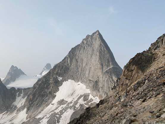 Earlier in this mini road-trip we climbed Uto Peak in Rogers Pass before moving to the Bugaboos. In our first day in the “Bugs” we carried overnight gears to Applebee Dome camp and made an ascent of Lions Way on Central Crescent Tower. This was meant to be a warm-up climb but turned out to be much harder than Brenta Spire itself. In the morning of our second day we woke up with a thick layer of smoke but such wouldn’t bother us from carrying on.