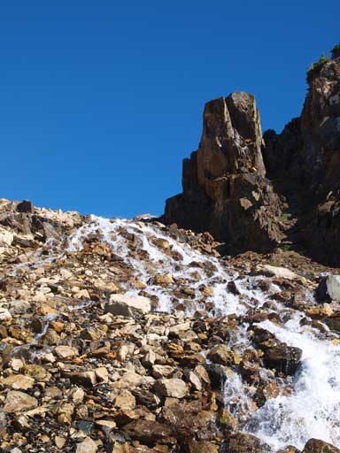 The trail eventually brought us to a ridge line and we followed it up for a short while. We somehow managed to miss the turn-off where we should pick the right side branch. By following the wrong trail we had to do some light bushwhacking. Essentially it doesn’t matter that much which trail you take. They’ll all lead you to the upper Nelson basin. Once at the basin the goal was to follow the creek up. This part went on longer than expected, and reminded me the Resolute Mountain’s approach.