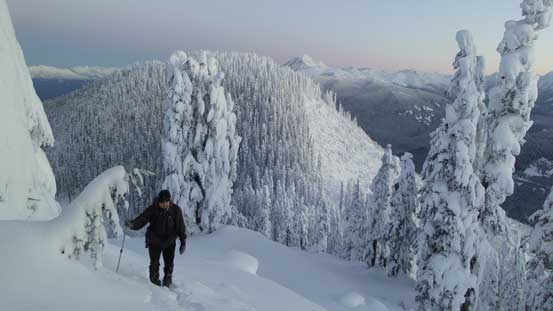 The south ridge of Mt. Mulligan did not look very inviting with mostly steep, untracked forested travel but it’s pretty short overall. Given the amount of work to get here we decided to push on to finish the whole project so we don’t have to come back again. Regarding Anif Peak, I’d highly recommend as a winter ascent.