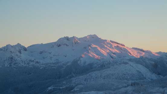 Atwell/Garibaldi massif on glow. The tip of Diamond Head in front also on glow.