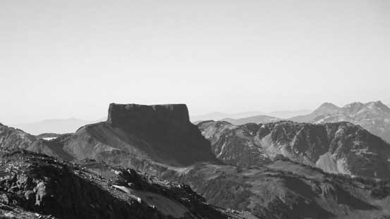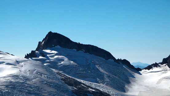 Up towards the true summit I started to encounter snow. I did haul my crampons all the way up here but the snow was great for kicking in if I had to, so didn’t bother to use them. At the base of the final obstacle I traversed climber’s left onto the N. Face. The snow did add a bit spice to the exposure but the ledge was fairly wide to allow some good foot placements. Soon I went around the far corner and seconds later I was standing on the summit, 8 hours after leaving the parking lot in the morning. The views were kicking-ass towards all directions.