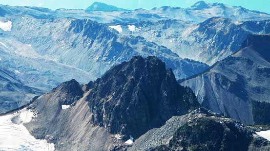 Castle Towers Mountain, or commonly known as just “Castle Towers”, is one of the bigger peaks dominating the backdrop of Garibaldi Lake – the heart of Garibaldi Provincial Park that sees perhaps more than 100 visitors every day in its prime season. Having already done the Garibaldi Lake hike 6 years ago and seen a couple trip reports on ClubTread with outstanding views from this gigantic mass of snow, ice and rock I was determined to give it a try at some point. It has three summits with the lowest west summit a mere Class 2, albeit very long plod, and well documented in Matt Gunn’s Scrambles in Southwest British Columbia guidebook. Getting to the true (central) summit is trickier, but described to be nothing harder than a “difficult scramble” (Class 3/4). There’re two commonly used approaches – the shorter way from Cheakamus Lake while the more scenic option from Rubble Creek.