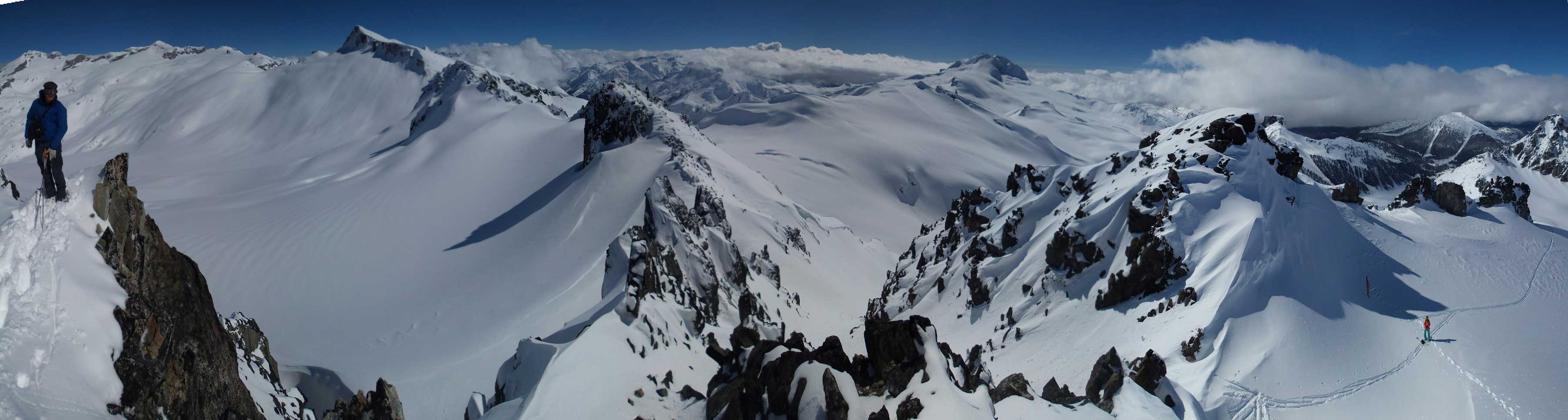 Deception Peak is nowhere to qualify a “major” summit, but surely an “interesting” one behind Garibaldi Lake. It appears like a series of pinnacles and the true summit is on the far west side. The usual approach is by a long march across Garibaldi Lake on skis and the peak can be fairly easily ascended from the north side via Sphinx Glacier. However, thank to the small nature of this objective comparing with the peaks nearby (The Sphinx, Castle Towers, Mt. Garibaldi to name a few), there’s virtually no trip report available online.