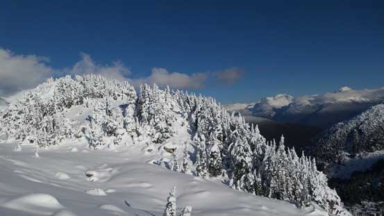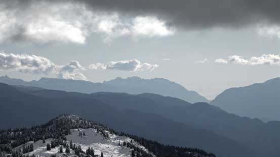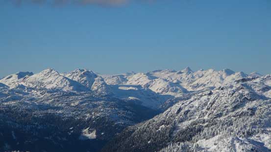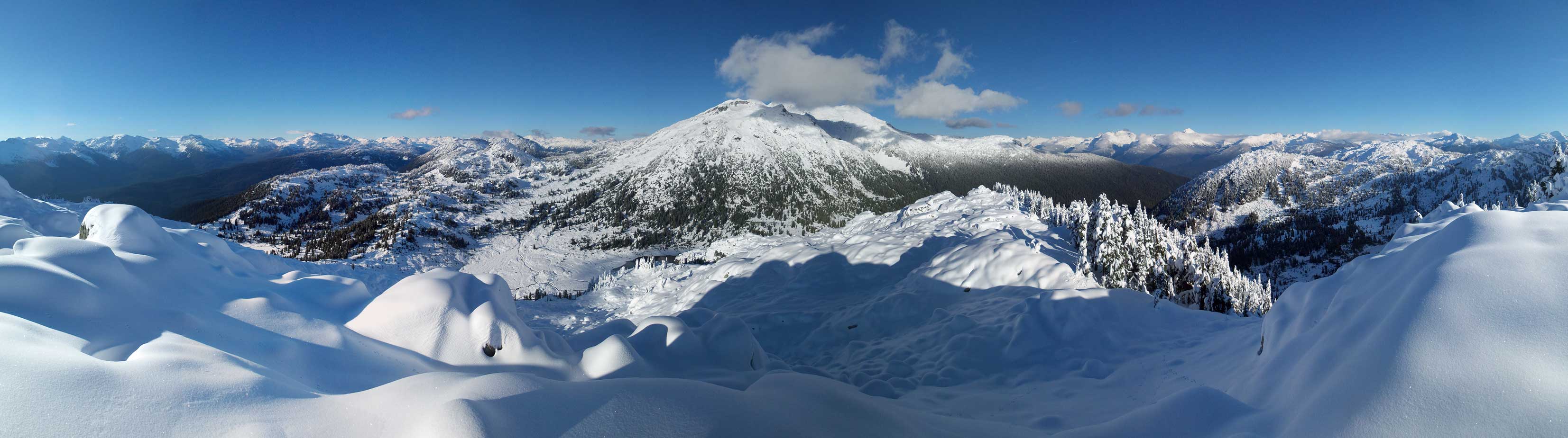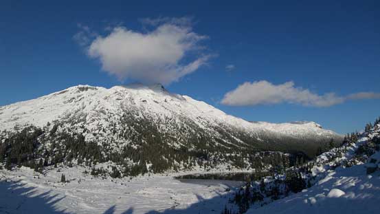 Gin Peak is the unofficial name of the small peak immediately on the south side of Rainbow Lake. It’s a fairly popular objective for skiers and snowmobilers approaching from Whistler Olympic Park while I ascended it as a bonus objective after finishing the nearby Rainbow Mountain. The approach I used was from Alta Lake Road along 21 Mile Creek (the traditional way to approach Rainbow Mountain).