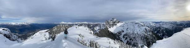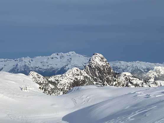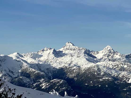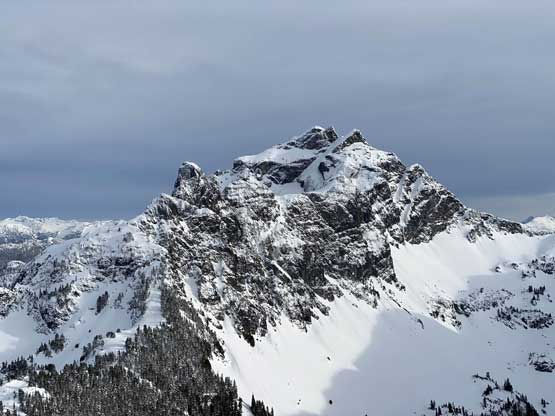 This peak in the close proximity to Squamish offers some really nice views but needs a better name, despite the official status of this name. Goat Ridge just simply does not sound sexy enough. The most common route is from Murrin Park via Petgill Lake trail and the undulating west ridge. An unofficially maintained trail goes beyond Petgill Lake to the alpine although complicated route-finding in micro-terrain is still required. There’s another option that goes up the east ridge from Goat/Copilot col but that route reportedly requires 4th class climbing and doesn’t have a lot of information. The west ridge route from Petgill Lake can also be done in winter conditions on snowshoes as the terrain’s gentle enough that avalanche hazard is minimal (but not non-existent).