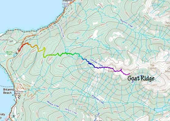 This peak in the close proximity to Squamish offers some really nice views but needs a better name, despite the official status of this name. Goat Ridge just simply does not sound sexy enough. The most common route is from Murrin Park via Petgill Lake trail and the undulating west ridge. An unofficially maintained trail goes beyond Petgill Lake to the alpine although complicated route-finding in micro-terrain is still required. There’s another option that goes up the east ridge from Goat/Copilot col but that route reportedly requires 4th class climbing and doesn’t have a lot of information. The west ridge route from Petgill Lake can also be done in winter conditions on snowshoes as the terrain’s gentle enough that avalanche hazard is minimal (but not non-existent).