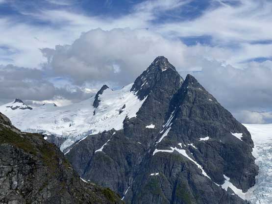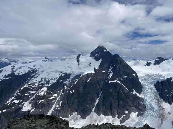 Mt. Albert (in clouds) behind Mt. George Edwards