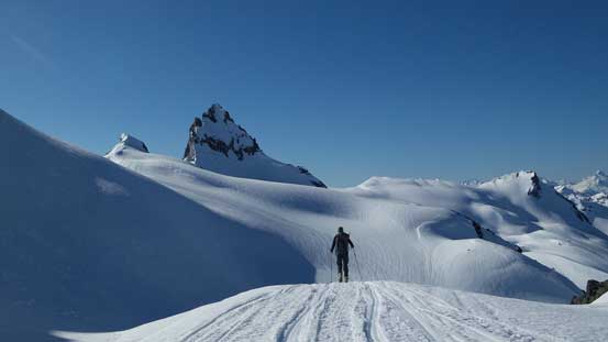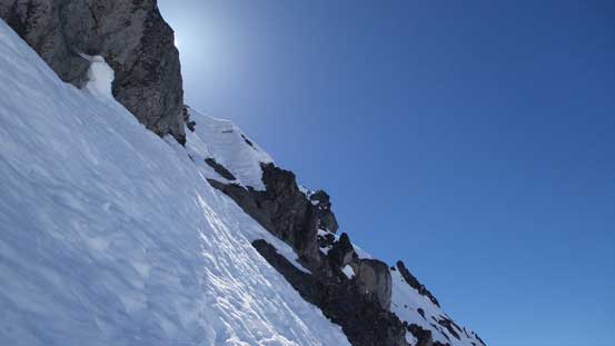 We’d go to the shoulder on climber’s right to bypass the peak ahead