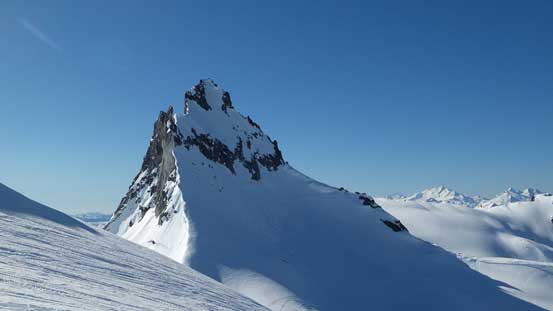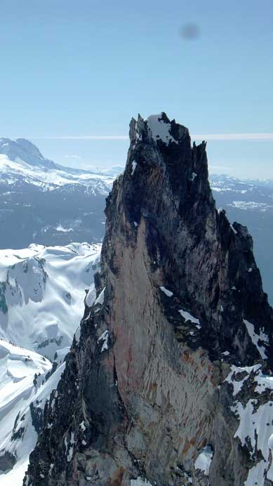 Pyroclastic Peak with the unclimbed Vulcan’s Thumb sticking from its left shoulder