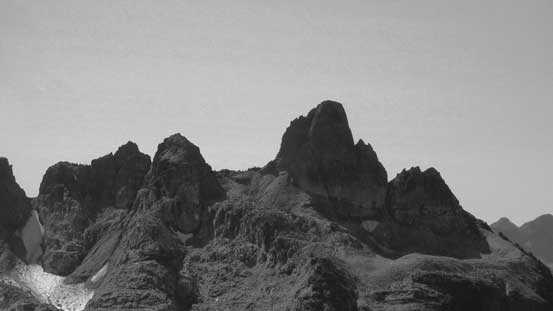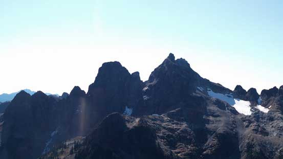 From here we continued along the old forestry road, picked the Sky Pilot Valley trail (really it’s just another old logging road), then near the end of this marked “trail” we correctly located the Habrich’s climber access trail which branched off up the left hand side forest. This trail was well marked and easy to follow, but got very steep at sections. But at least that meant we’d gain elevation quickly so that’s a good thing. There’s even a ladder somewhere about 2/3 of the way up helping out on a trickier spot, but my thought was if you can’t climb that step there’s no way you can climb Habrich anyway… In any case, we made good time arriving at “Habrich’s west col” – the start of this route.