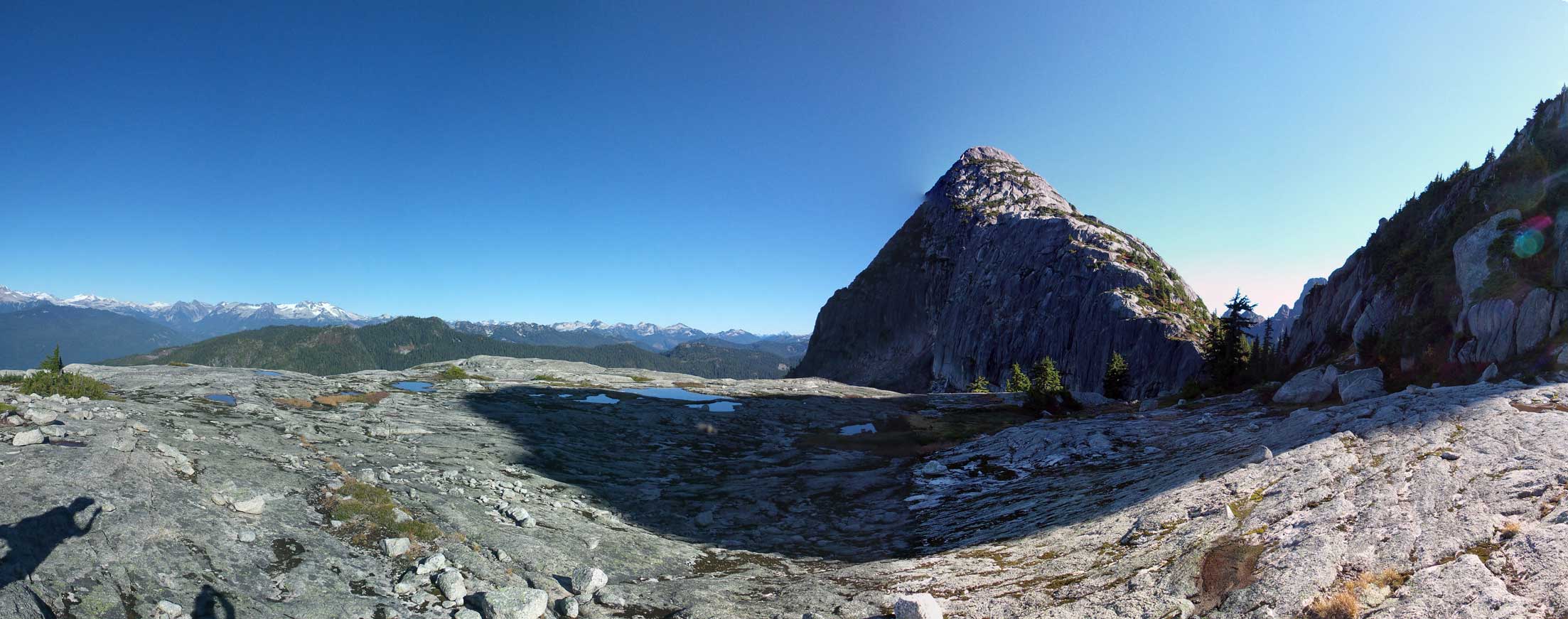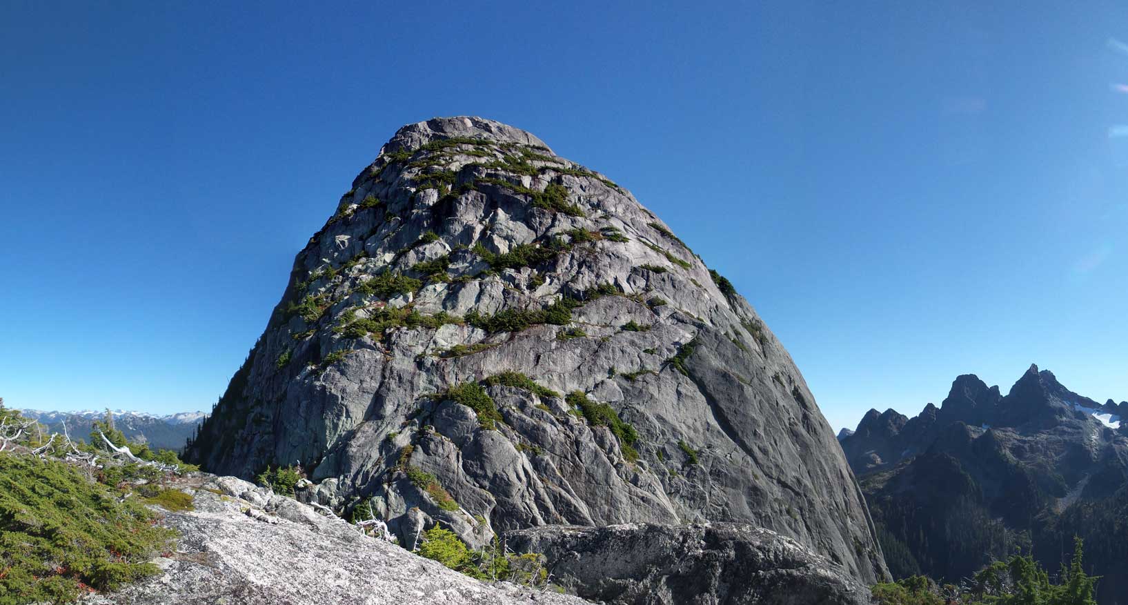 Upon seeing a high pressure system building up over the province Vlad and I had been talking about making an ascent of a “harder” objective. It was a little bit difficult to finalize the choice but eventually we decided to downgrade our ambition and picked Mt. Habrich. This is the lowest among the three peaks accessible from the upper Sea-to-Sky Gondola station, but considered as the biggest prize by many parties. The least technical route is the NE Ridge (Class 3-4), but relatively hard to access and involves fair a bit of bush thrashing. Our inspiration mostly came from Simon’s excellent trip report, an “old school Class 4” route on the “NNW Face”. Having already ascended the nearby Sky Pilot Mountain and The Copilot earlier this month I was excited to make an attempt at this harder neighbour.