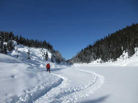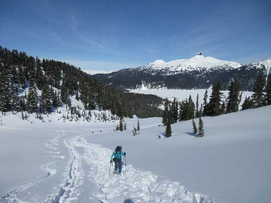 Mt. Price is a dormant volcano in the heart of Garibaldi Provincial Park rising off the south shore of Garibaldi Lake. This peak is not nearly as popular as the nearby Panorama Ridge or The Black Tusk but offers equally, if not better views. The standard route goes up its wooded NE Ridge and there’s an unmaintained trail for most of the way starting from the outflow of Garibaldi Lake. The same route can also be done in winter on skis/snowshoes but a more efficient winter route ascends directly up one of the few northern gullies. The access is smoothed out because one can easily ski or snowshoe across the frozen lake instead of dealing with the undulating nature of the forest. Despite the easiness of access this is by no mean a short trip – 28 km with over 1500 m elevation gain. An additional 5 km is added in the dead winter when the access road isn’t maintained, which was exactly the case of last weekend.