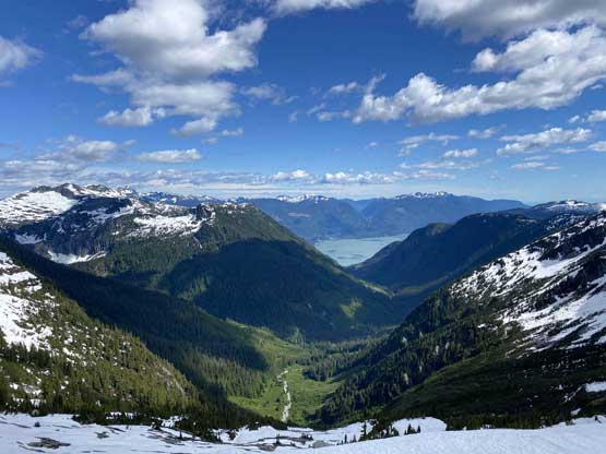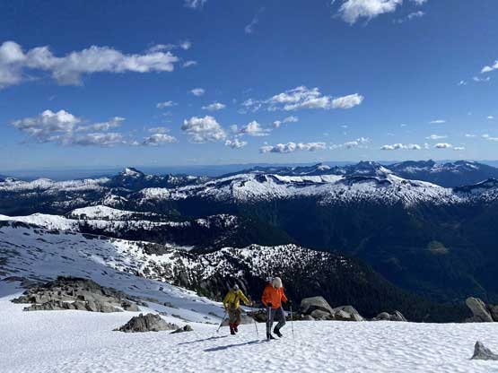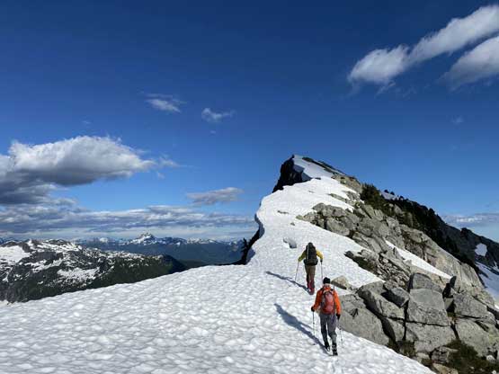 Alex and Vlad descending, showing the massive vertical relief of Coast Mtns.
