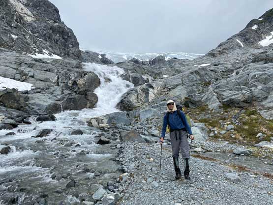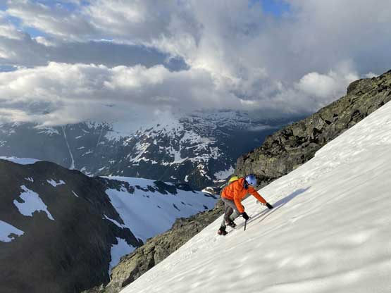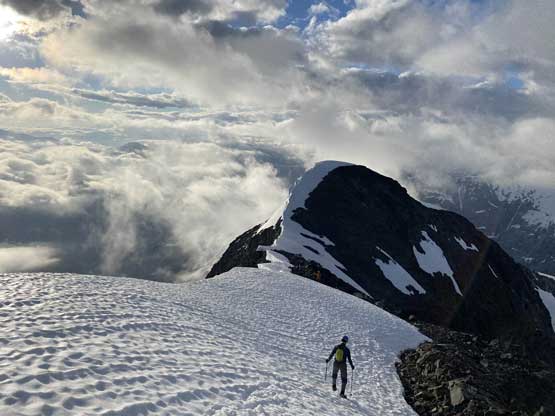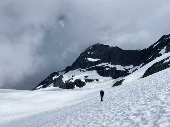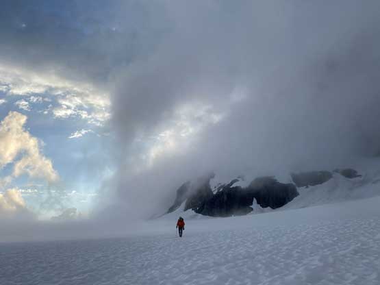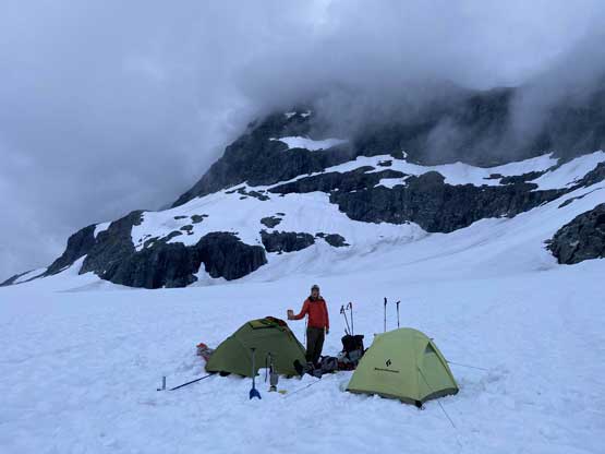 Vlad coming to the camp under the south face of Mt. Tinniswood