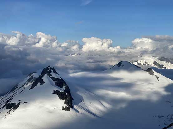 A zoomed-in view of Mt. Pearkes, that we also ascended in this trip