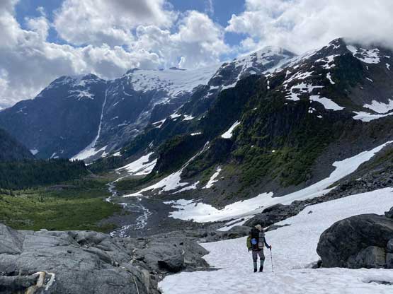 Alex had been planning to visit this area for several years and had made one half-heart attempt in spring time on skis from Ashlu-Elaho Divide, that ended up bailing with two weeks of food left in their packs. Alex and I had been talking about this area to traverse a bunch, if not all of the peaks in the headwaters of Sims Creek for almost a year. The summer of 2019 ended up being too rainy that we determined there wasn’t a prime window. Vlad boarded the game and made the commitment months ahead and the three of us was essentially on-call to climb these peaks in July 2020. The window eventually came but wasn’t prime neither with several days of questionable weather in the middle of the stretch, but we pulled the trigger anyway as we figured this might be as good as it could ever get. Contrary to the previous explorers to climb just one peak (Mt. Tinniswood) in a span of that many days is considered inefficient in my theory of peak-bagging. In this modern era with the availability of helicopters it made perfect sense to skip the first day or two days’ misery and start directly in the alpine.