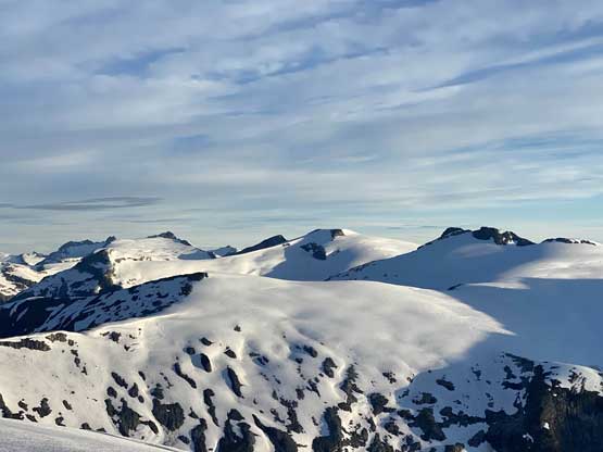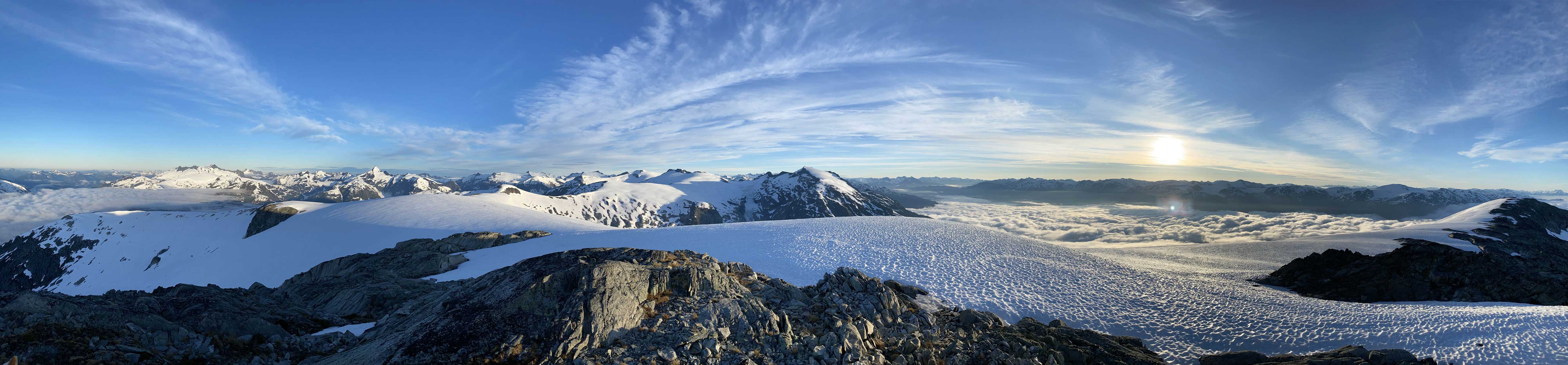 The plan was to place a food drop north of Mt. John Clarke and then fly to the summit of Mt. Willson carrying 9 days worth of food, tagging as many summits as we humanly could including the main prizes of Mt. Boardman and Mt. Tinniswood, and then carry 5 more days of food traversing southwards towards Ashlu Mountain for as far as we could/wanted to go. Alex and Vlad had done similar type of traverses in the past few years and comparing to them I’m a newbie into this game. This would be my first big expedition in the Coast Mountains and I was excited but also a bit anxious about it. I did have done three longer trips in the past but those were in different styles. The 8-day Lizzie Creek peak-bagging slam only required us to carry heavy loads for one day; the ascent of Mercedario (10 days) felt more like an alpine camping trip that we hardly moved more than 4 hours each day, and the Mt. Caubvick to Koroc River descent (12 days) was more of a packraft expedition. I had little idea how much food I should carry and in the end I just opted for whatever that counted 900 grams per day for the first 9 days. We placed a loads of luxurious food at the food cache and I would not worry much about the section beyond until we got there.