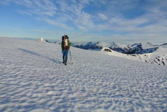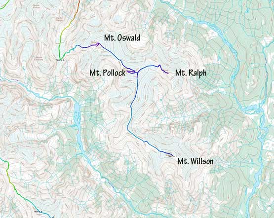 We took our first long break on the top of that bump and then resumed the plod towards the next one, which was about 2 km south of Mt. Pollock. The ascent was again, a slow show thank to the heavy pack, but at least we did manage to move steadily. Our next stop would be the slope under Mt. Pollock but we would do a side trip to Mt. Ralph first.