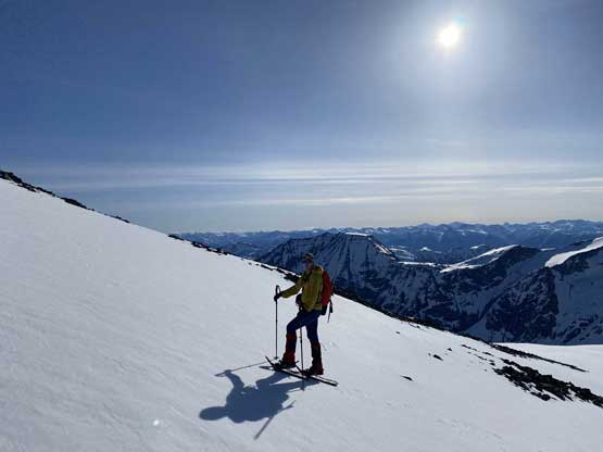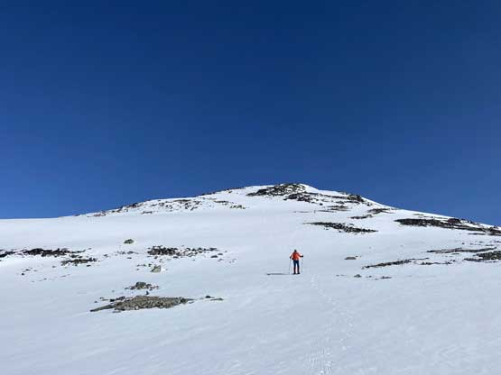 Me plodding up Oasis Mountain’s south slopes. Photo by Alex R.