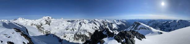 Partial Summit Panorama from Oasis Mountain. Click to view large size.