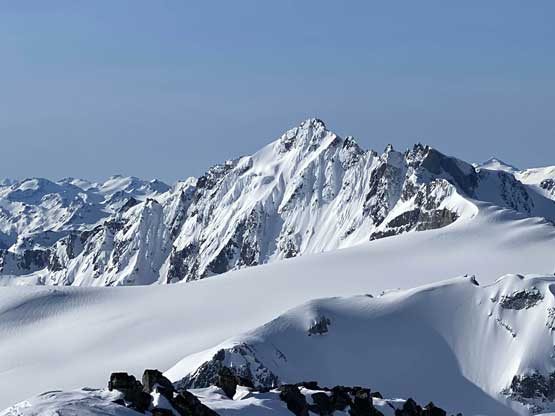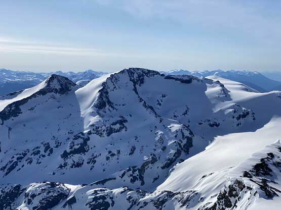 A closer look at Lesser Wedge Mtn. with peaks on Spearhead Range behind