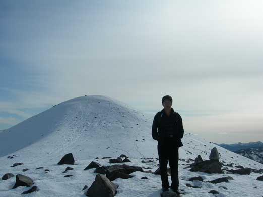 After 5 km mundane hike, we made to Red Heather meadows, and then the view opened up completely, with Atwell Peak (part of Mt. Garibaldi massive) and Mt. Tantalus being the most eye-catching. These are great mountaineering objectives that attracts me coming back to Vancouver someday in the future. We also encountered lingering snow patches. I believe it was my first time actually hiking on snow covered terrain, and it was exciting. In short time this trail brought us up and over the highpoint of Paul Ridge, and then we got great view of Elfin Lakes, as well as our objective – Opal Cone in the far distance. It looked awfully small compared to Mt. Garibaldi nearby…