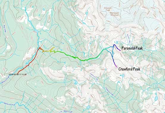 Crawford Peak and Paranoid Peak via Paranoid Creek Valley. GPX DL