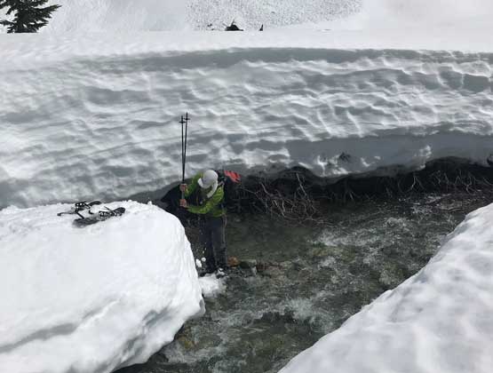 Me climbing down a snow bank to get some water. Photo by Vlad