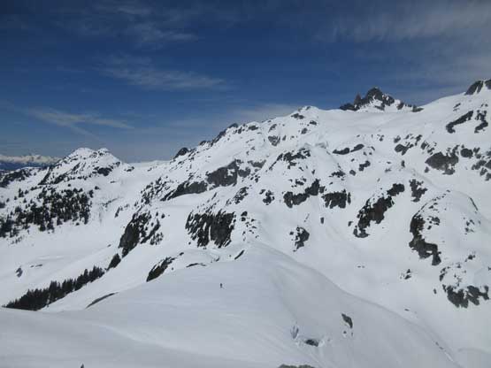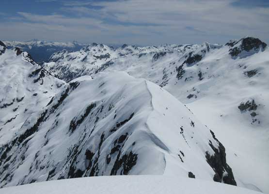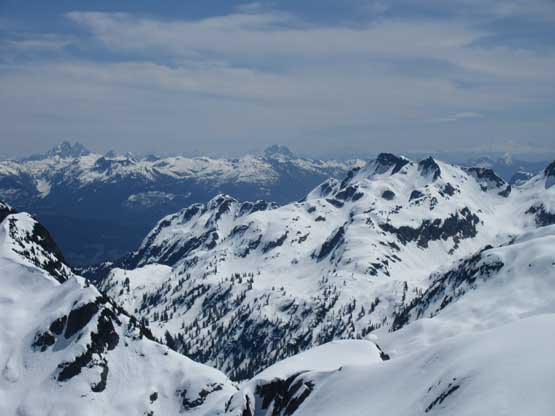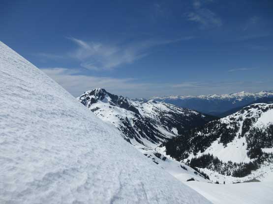 A wider view towards Judge Howay and Robie Reid, with Cotard Peak in front