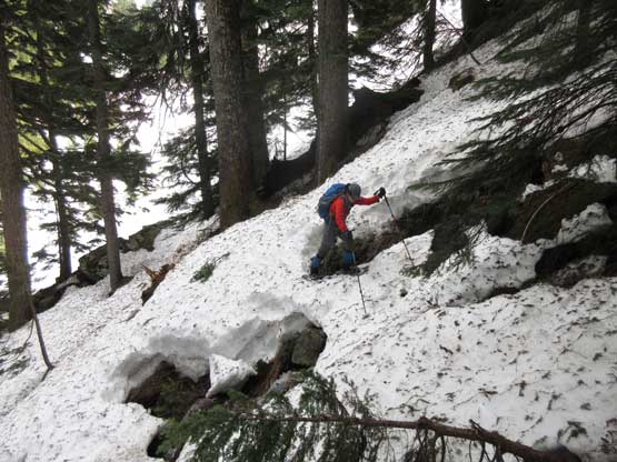 Lily re-ascending steep forest back towards “Skullhead Pass”