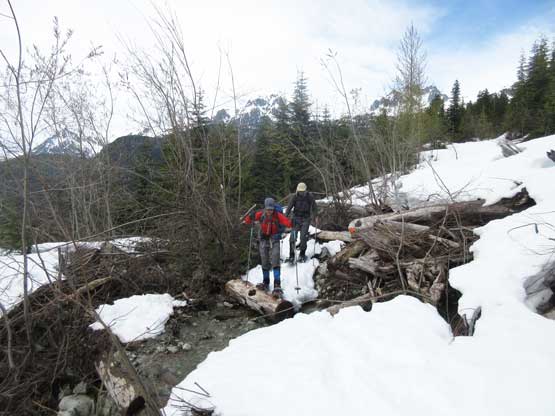 Our round trip time was under 12 hours which was faster than expected. Other than the side-hilling stretch beside the raging Paranoid Creek the rest of the route worked out nicely as planned. I have to say this is a fairly quick way to get into the headwaters of Paranoid and Bucklin Creeks but even so, expect a long haul. Timing also plays an important role. Abundant amount of snow is needed but you also want the Skookum Dam Road to be dry for the access. I don’t have chains nor winter tires on the Tacoma so at least for me, driving on snow isn’t an option.