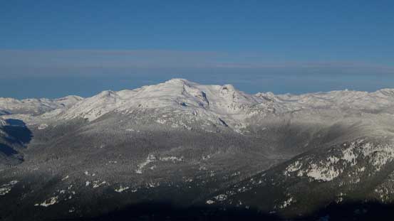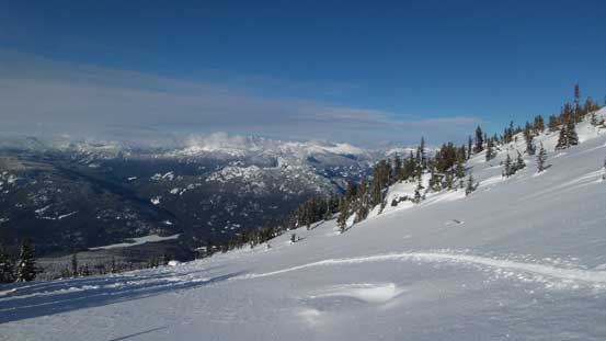 We took a lengthy break on the summit as part of me didn’t want to deal with the Vancouver’s rush hour traffic had we descended too quickly, but eventually it’s still the time to leave this beautiful place. Plunging down Phalanx Glacier was effortless and then we made a call to explore a lower route as we didn’t want to re-ascend that aforementioned steep slope. This route did avoid that slope but only to dump us onto more steep slopes including fair amount of trail-breaking and elevation regain. I don’t know how the two compare but in the end I don’t think our return route gives much advantage. Once back onto the broad NW Ridge we easily plunged down to treeline and then had some interesting time slipping and sliding down that steep forested slope to Blackcomb Creek.