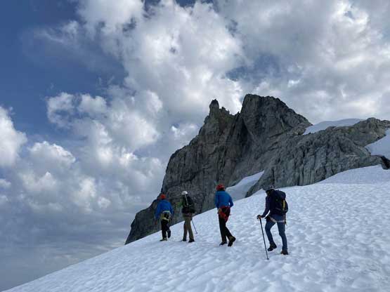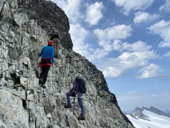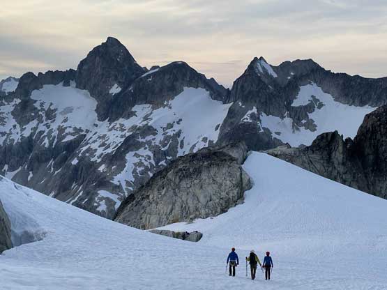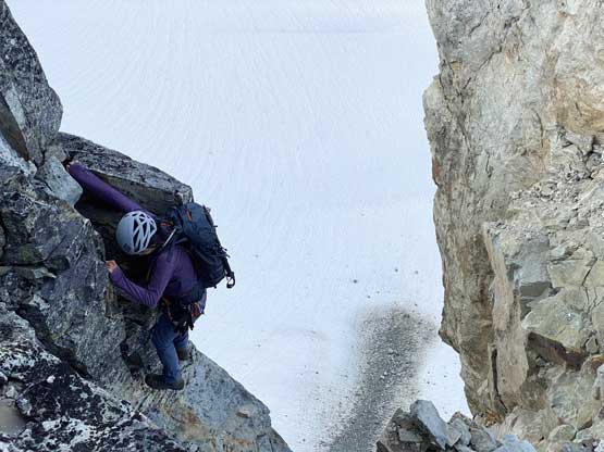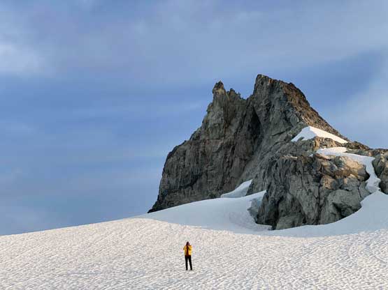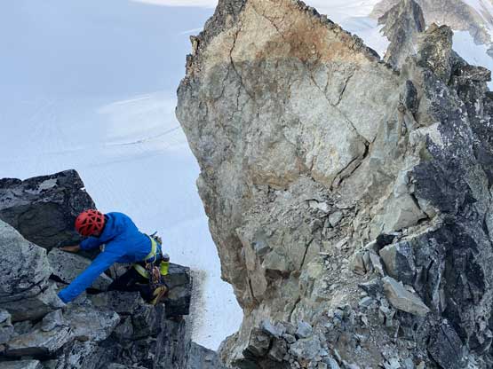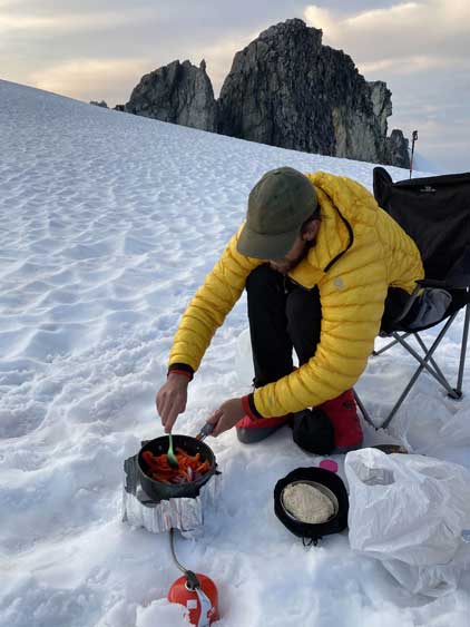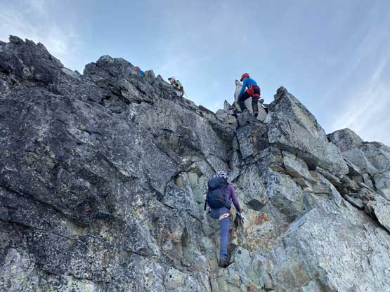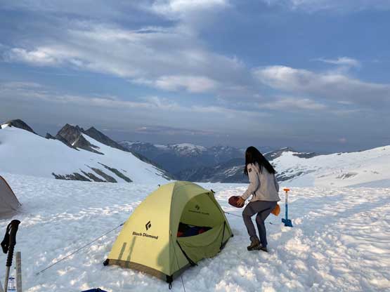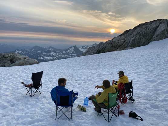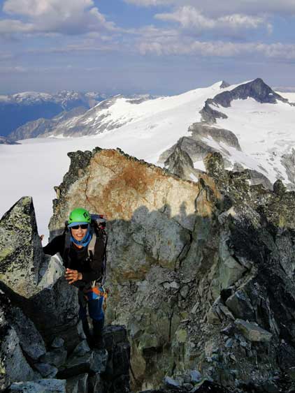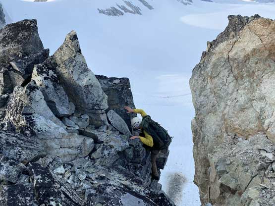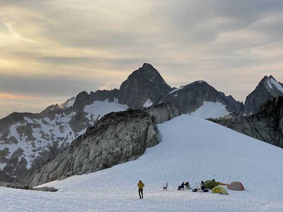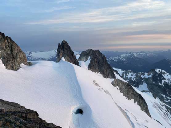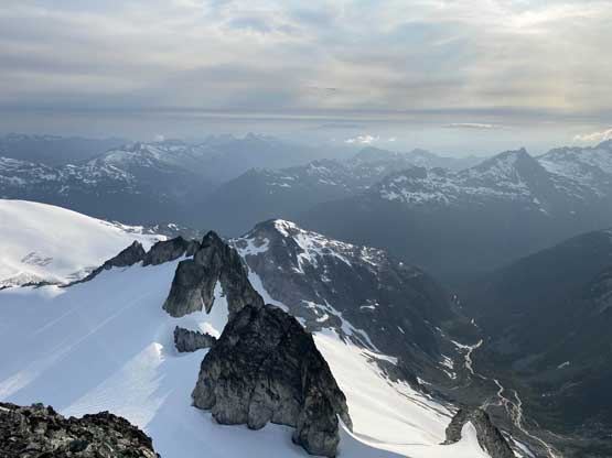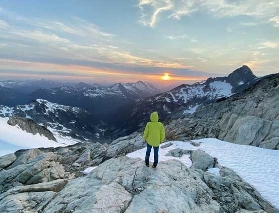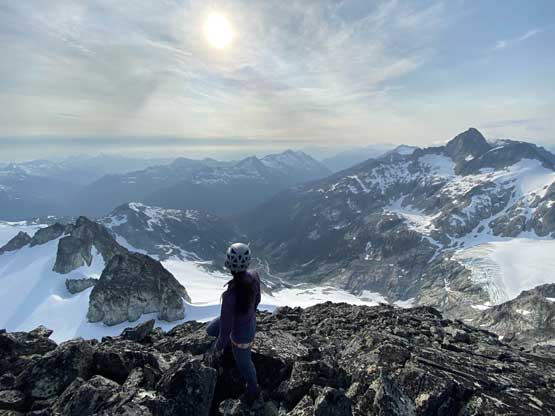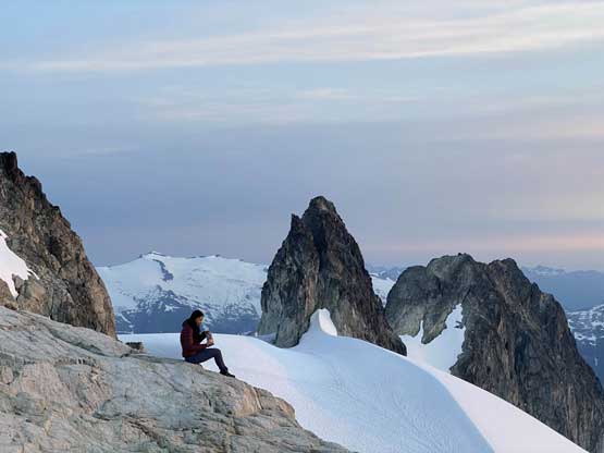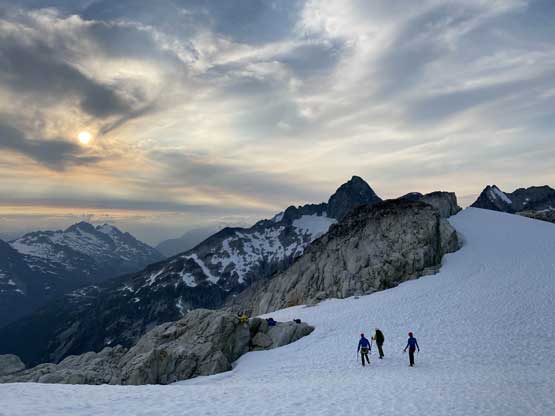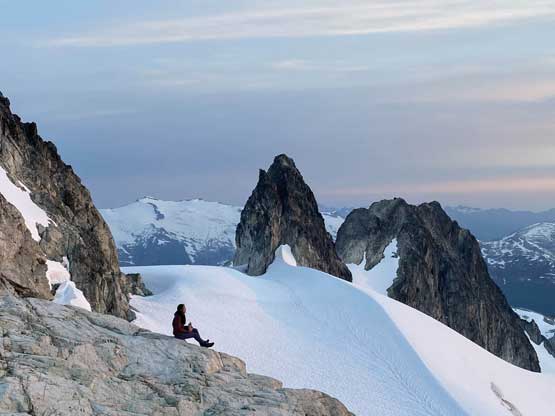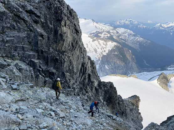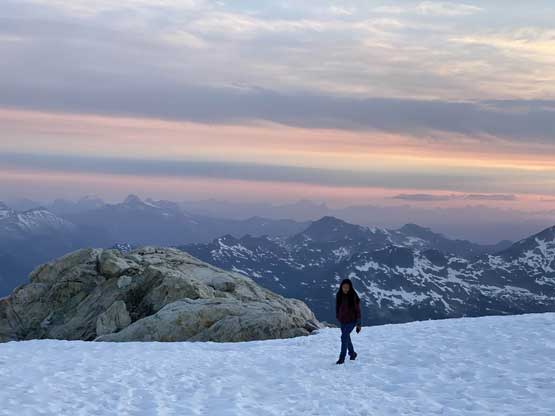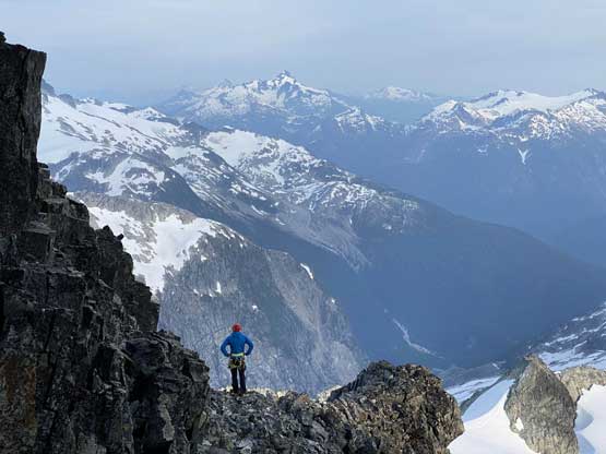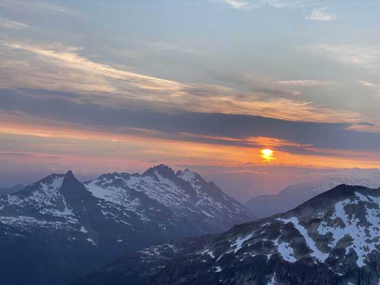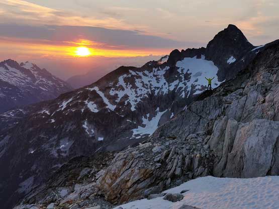 Eventually it’s the time to descend. We opted to downclimb the 4th class step as we all felt comfortable on that type of terrain and then had a cruise sail back to camp. The only hazard was rock fall but we all managed it well. We got back just in time for an incredible sunset that turned out to be the second highlight of this trip. On the next day we would climb Ashlu Mountain first and then Amicus Mountain before flying back home.