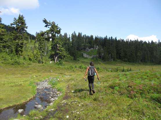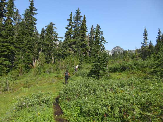 On Friday evening Adam drove to B.C. and slept in my home but in the morning we drove separately to Squamish because Adam wanted to stay there for at least a week longer. I picked Mel up from North Vancouver and we regrouped at the start of Chance Creek FSR. The start of the road had lots of “No Parking” sign so we continued driving up the logging road in two vehicles. After about 1 km up the road we found a nice pull out to park Adam’s Subaru and then I had no problem driving the three of us to the regular starting point in my Tacoma. An aggressive 4×4 driver could push all the way to the trail-head saving at least 40 min of walking but that was not me.
