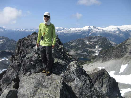 The bench traverse wasn’t as pleasant as I was expecting neither with a lot of micro terrain up-and-downs and talus hopping. Thankfully there was still abundant snow coverage to smooth things out. Near the base of the peak we aimed towards the standard “SW Gully”. The scramble up this gully involved some wet and mossy 3rd class with moderate exposure so wasn’t as easy as we thought neither. I admitted that I did zero homework and hadn’t touch the scramble book for ages. The rest of the ascent to the summit was mostly class 2 on open terrain.