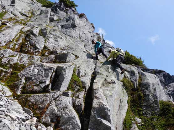 On Friday evening Adam drove to B.C. and slept in my home but in the morning we drove separately to Squamish because Adam wanted to stay there for at least a week longer. I picked Mel up from North Vancouver and we regrouped at the start of Chance Creek FSR. The start of the road had lots of “No Parking” sign so we continued driving up the logging road in two vehicles. After about 1 km up the road we found a nice pull out to park Adam’s Subaru and then I had no problem driving the three of us to the regular starting point in my Tacoma. An aggressive 4×4 driver could push all the way to the trail-head saving at least 40 min of walking but that was not me.