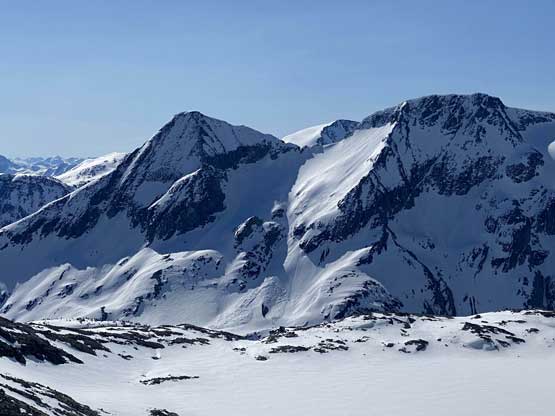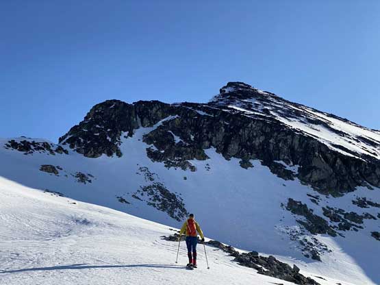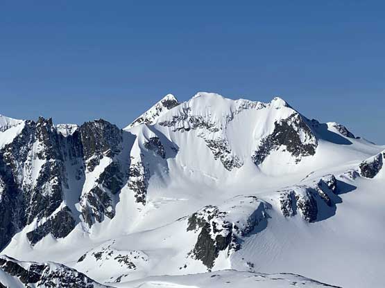 Alex and I planned to slam the peaks in this area on snowshoes in spring time. Earlier in the trip we had ascended Mt. Neal, Eureka Mountain, Peggy Peak, Oasis Mountain and Mt. Moe, slowly working our way northwards. We camped at Weart/Moe col and the objective of the last day of this trip was Ure Peak. It looked farther away than anticipated, and seemed to have at least one tricky notch on the summit ridge. We had zero beta about the notch and had been talking about it for the last few days, but there’s only one way to figure it out.