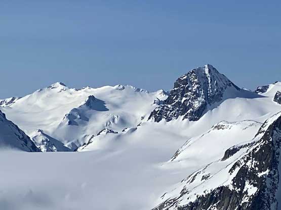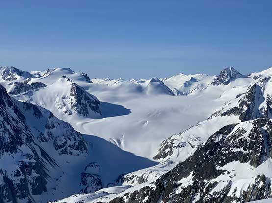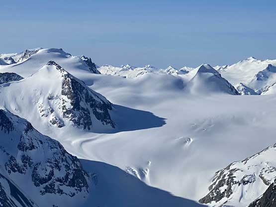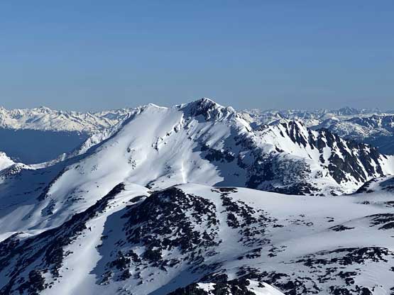 Looking north from Ure Peak’s west ridge. Mt. Currie dominates