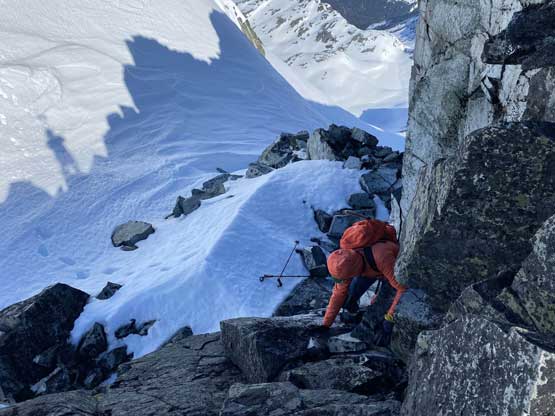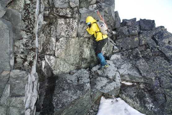 Me scrambling 3rd class notch on west ridge of Ure Peak