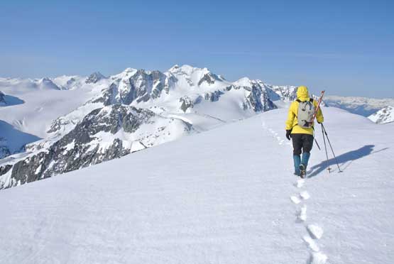 “Ure Peak” is the unofficial name of a remote summit in the northern Garibaldi Provincial Park halfway between Mt. Currie and Wedge Mountain, at the headwaters of Ure Creek (probably how it’s named), and boasts Mystery Glacier on its north slopes. The access of this peak is contrived and requires one full day by any mean. This area is not unheard in the ski mountaineering community as the classic Currie-to-Blackcomb Traverse goes right by Mystery Glacier. However, I doubt any skier would bother to ascend the summit of Ure Peak, as such requires lots of boot-packing and scrambling over a tricky notch. For the summit routes I’ve only seen one or two trip reports on bivouac.com.