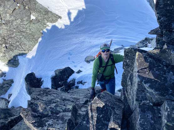 Me scrambling 3rd class notch on west ridge of Ure Peak