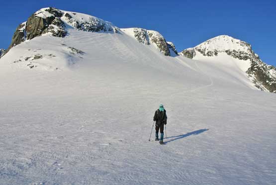 Me heading down the north glacier of Mt. Moe. Photo by Alex R.
