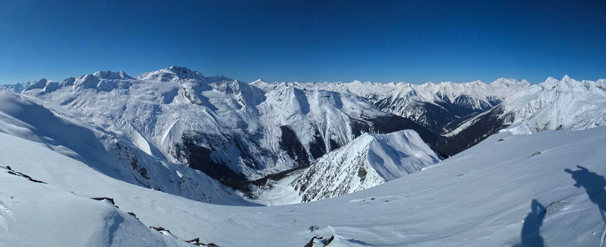 The entire approach is written in my Youngs Peak’s trip report as that was our primary objective. From the ridge between Lookout and Youngs the ascent of Lookout Mountain was only a 20-minute round trip so it made no sense not to bag it.. The first summit appeared to be higher but we ski’d to the second summit just to make sure we stood on top of the official one. The view was better from the far one anyway with Mt. Sir Donald stealing the show.