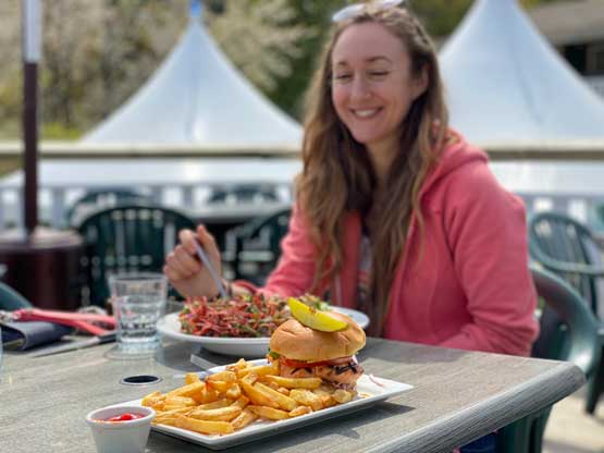 The ascent had taken us 1 hour 15 minutes so we likely wouldn’t have enough time to catch that 1:10 pm ride back home, but we still wanted to try. We descended as fast as we humanly could but sometimes the terrain just didn’t allow us to go too fast. I also made a navigation error about halfway down, but quickly realized that. In this forest it’s very easy to get disoriented so I had to check GPS every few minutes to make sure we took the most efficient path down. We eventually jogged down the logging road and sped the drive but still missed the ferry by about 7 minutes. The next ride would be 2:55 pm so we walked back to find a local pub for lunch. “Apodaca Peak” was my last objective on Bowen Island so I likely won’t be back here anytime soon, so we might as well take our time to explore the civilized part of this island. The food was quite good but the serving was slow. It took them about an hour to prepare our food but we didn’t mind as there’s literally nothing else to do. The traffic back through Vancouver was just as bad as expected and I ended up being 1 hour late at work, which was definitely not ideal but whatever.