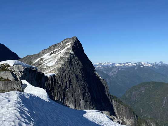 Mt. Pearkes is a fairly sizeable summit overlooking the Queens Reach of Jervis Inlet that also boasts a fairly interesting and iconic profile, especially viewing from the north. This peak is however, very rarely ascended as far as I know due to the access logistics. It seems like a ferry ride up the Jervis Inlet followed by a sea-level-bushwhack would be the most logical way, but attempts are rarely heard and in fact, a simple Google search leads to zero information and the local encyclopedia bivouac.com also states zero route information. The north side of this peak might be easier to access as it connects to Mt. John Clarke area via some ridge systems but the non-technical side is from the south.