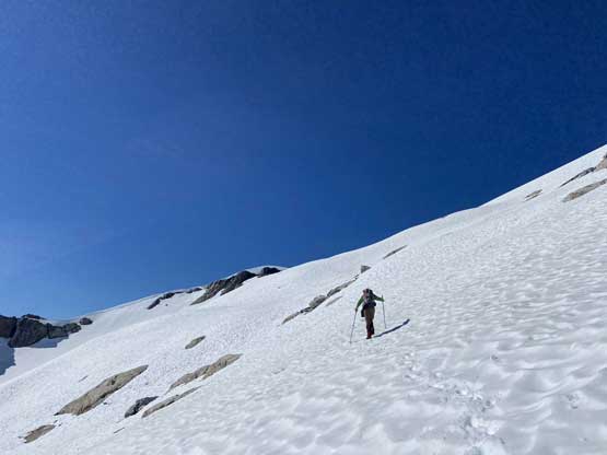 The uppermost NW Ridge had a little bit of steep snow but otherwise offered zero technical difficulty. We all managed to ascend this peak without the need to take out an ice axe. I was hoping to find a very old register but we could not even find a summit cairn. We again, took a very long break on the summit as we needed not to rush.