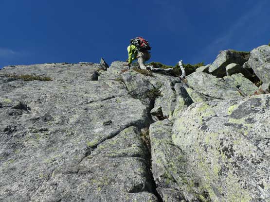 Me scrambling up a fun pitch of 3rd class. Photo by Lily Q.